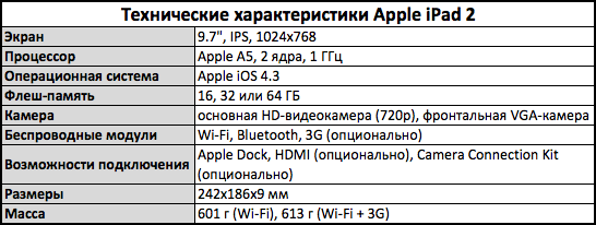 Планшетник iPad второго поколения – это полностью переработанный компьютер. В первую очередь он значительно быстрее и построен на двухъядерном процессоре A5. Производительность процессора iPad 2 в два раза выше, чем у A4, а производительность графики выше в 9 раз. Несмотря на мощность, энергопотребление процессора A5 такое же низкое, как и А4.