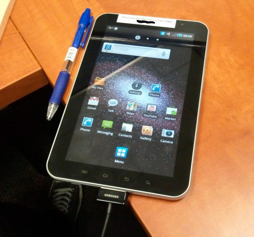 В сети появились новые "живые" фотографии планшета Samsung Galaxy Tab. Интересно, что на этот раз устройство представлено в версии для сотовых сетей CDMA (хотя, GSM/UMTS вариант для Европы тоже будет). По всей видимости, данная модель предназначена для американского рынка и может выйти у оператора Verizon. Напомним, анонс Samsung Galaxy Tab должен состояться на этой неделе на выставке IFA 2010.